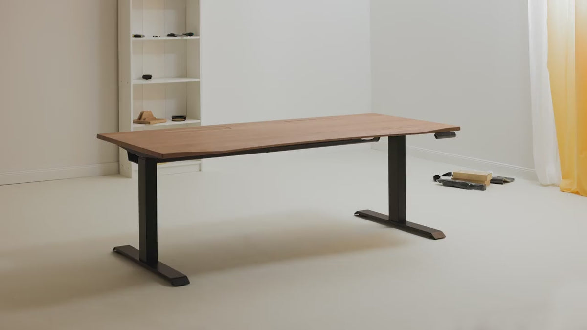 An elegant solution for anyone looking for a high-quality height-adjustable (or fixed) wooden office desk made of solid oak or walnut wood.